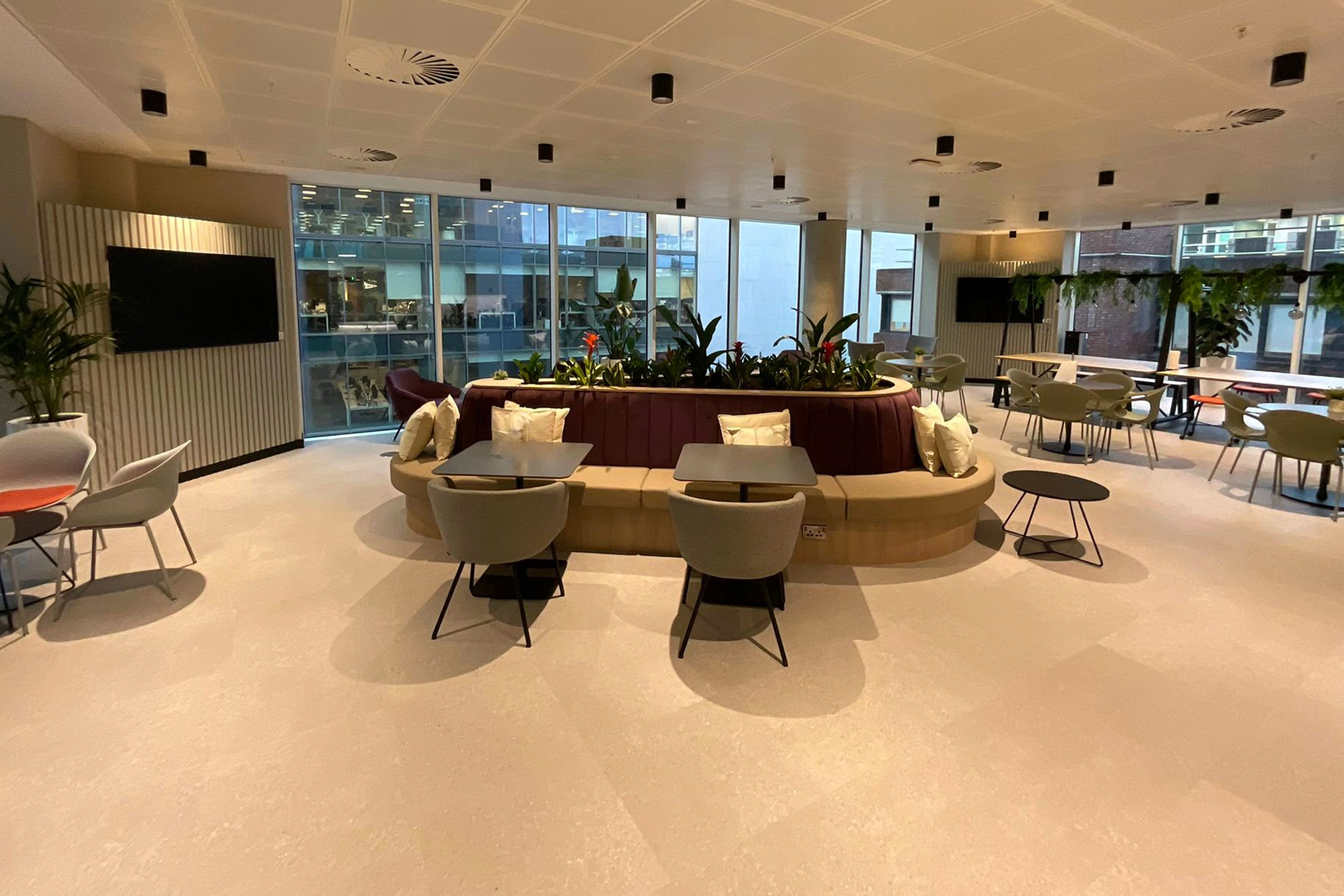 The result is a cohesive and versatile workspace that enhances both employee experience and day-to-day functionality, with a clear emphasis on quality craftsmanship and attention to detail.